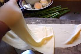 Traditionally, Italians would have used a very large rolling pin, and you can do it that way if you like, it just requires a large flat surface and a bit of elbow grease. In this day and age, I think it's fun and advisable to use a pasta machine. Attach it firmly to a nice clean table and divide your pasta dough into four pieces, covering everything with a damp clean tea towel to stop it drying out as you go.